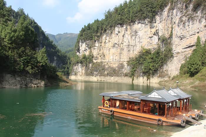 乘船观光,沿岸峭岩如削、钟乳倒悬、飞瀑处处,湖面鱼跃金鳞、水鸟欢鸣、笠翁泛槎,美不胜收。人在清溪湖,涌满腔激情在画廊中浪遏飞舟,是人生最难得的快事。奇峰耸峙、云遮雾锁、藏奇纳珍,堪比蓬莱瀛洲。清溪湖,更是吸氧洗肺的养生天堂。