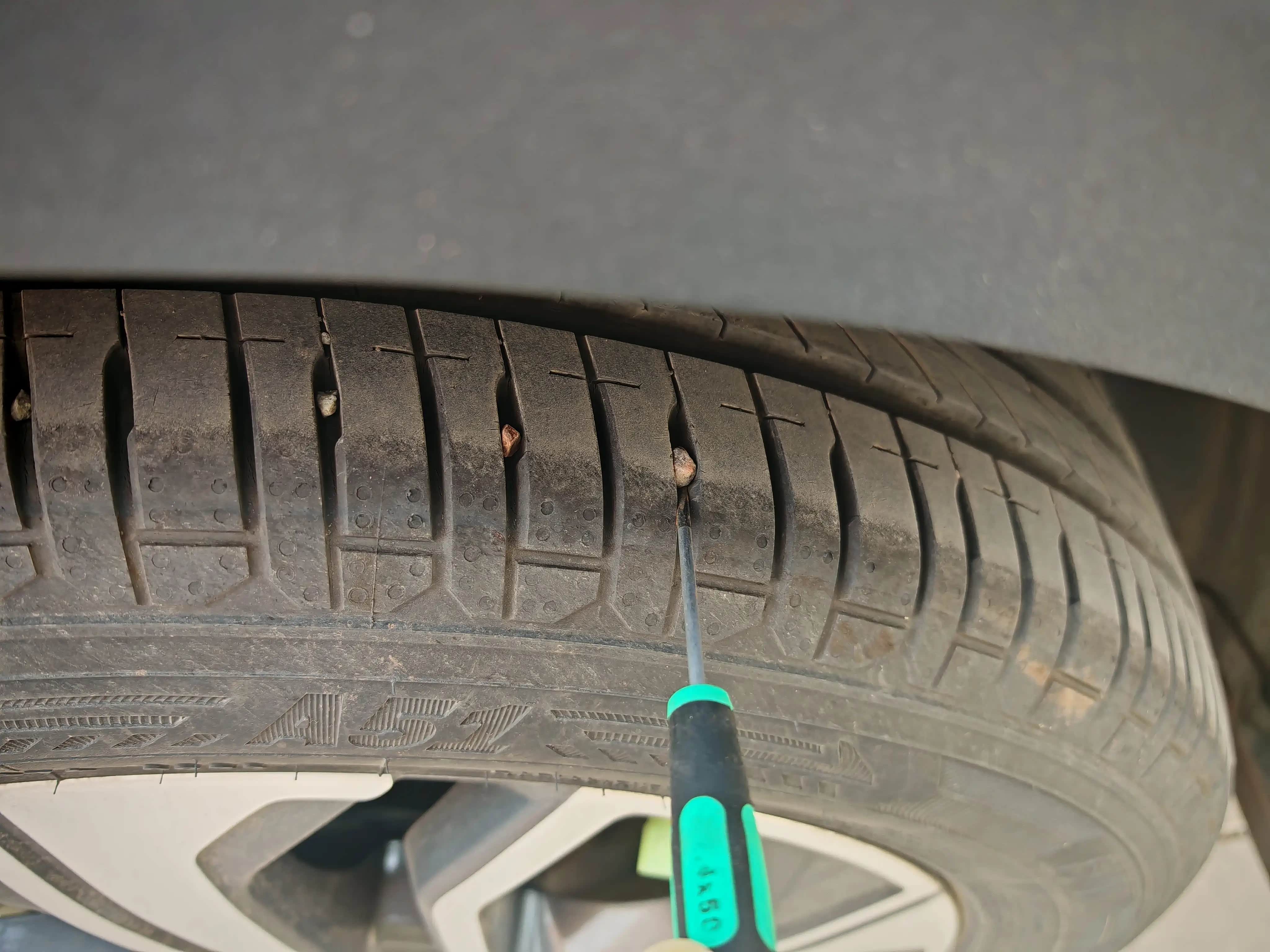 除了胎压,胎纹的检查也不能偷懒。我习惯用小平口螺丝刀,把胎纹里卡着的小石子逐一挑出来。这些看似不起眼的石子,长期卡在胎纹里,不仅会让车辆行驶时产生刺耳的噪音,还可能割裂胎纹,日积月累就会埋下爆胎隐患。