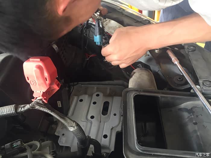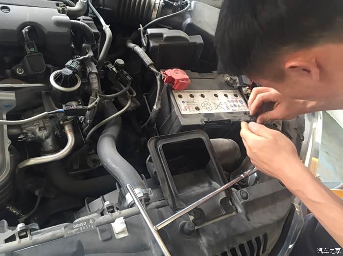 第三步:拆电瓶,很无奈,由于思铂睿近光灯线束在电瓶侧下方,只能拆掉电瓶,不然空隙太小,无法下手。