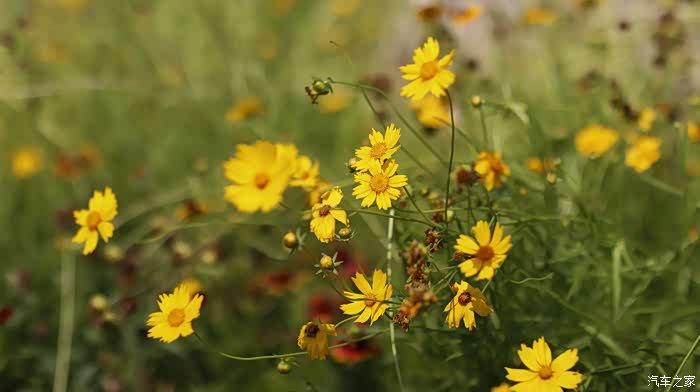 阳光和鲜花的映照下,我的爱车显得格外的亮丽