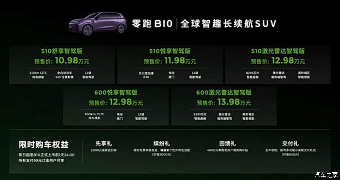 从以上各点可以看出,从续航、操控到安全配置,零跑B10以“入门即越级”的姿态获得了绝对优势,对于追求高价值体验的用户,零跑B10无疑是更优解!