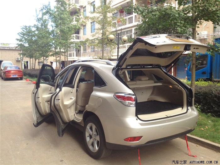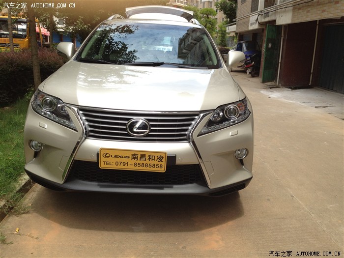 上了会儿网,WC去的路上看到楼下一对中年夫妇在看展车。仔细一看,原来是新款RX270.我打量了一番,发现前脸和老款完全不一样了,带着好奇我下楼了。顺便带上耳朵听4S妹在讲解新车的一些东西。可没过几分钟,那夫妇又去看GS了,可我还想了解更多关于RX方面的知识。于是我又找了一个美女,她的热情和话语,让我心理默默的接受了,顺便就拿手机拍了几张,准备带回家给老婆大人参考。回到家,老婆的答案很明朗,就它了,RX270豪华,金外米内,裸车价53。