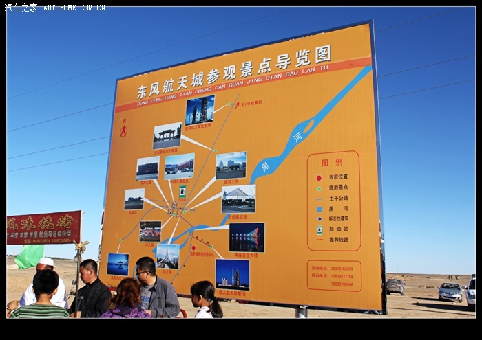 顶着大太阳匆匆走马观花看完之后,已是腿困脚乏,时间也到了下午3点,还早,去黑城转转先,到了岔道口,路牌显示离黑城还有十几公里,路就被扎断了,啥都木有看见,先一个交个80元人头费再说,依旧是什么都没有,只有两张破纸上画着“售票处每人80。。。”无语,不看了。。。又赶往东风航天城