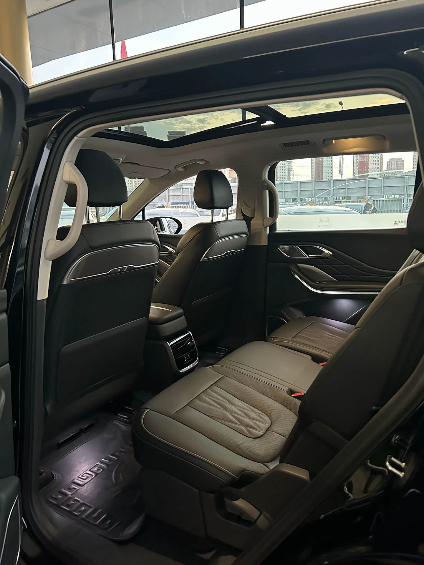 车内空间宽敞通透,全景天窗引入充足自然光线,营造出开阔明亮的环境氛围。精致的缝线工艺贯穿始终,从方向盘到车门内饰板,每一针每一线都凝聚匠心。氛围灯带随心切换色彩,为夜晚出行增添浪漫情调。红旗HS7 PHEV的内饰,将豪华舒适与科技智能完美融合,全方位满足你对高品质出行的追求。