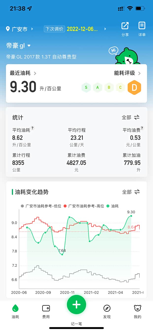 总结,从43902开到46130,油耗平均表现在5.8-7.5左右跳动,大部分时间在6点几,实际算出来一箱油在550-630公里左右,现在的油价算出来在6-6.7毛左右浮动,减震过滤还是可以,和我之前的车比起来后段要硬一些,但是前段过滤一些小震动还是很不错,有悬浮感,空间蛮大的,坐人不拥挤,后备箱地台低,拿东西很方便,买suv就是图这个。