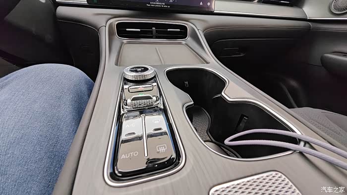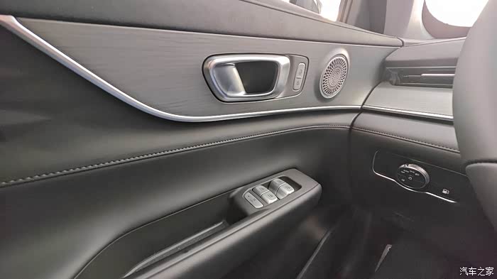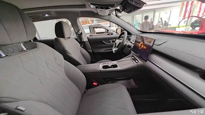 坐进车内,15.6英寸的2.5K高清中控大屏,显示效果非常细腻。车机系统搭载了高通骁龙8155芯片,操作流畅度不错,语音识别也很灵敏。内饰用料方面,个人感觉已经逼近一线品牌的用料了,能触及到的地方基本上都是软包材质。