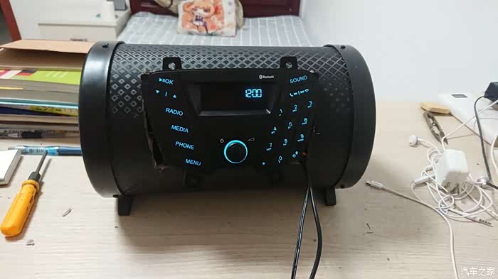 正巧一个偶然的机会得到了一个废旧的车载低音炮,(脑补一下,拖拉机上面用的,用自行车带一绑的那种)。正好还有一个拆下来的翼搏CD机,于是我就开始折腾了。。。
