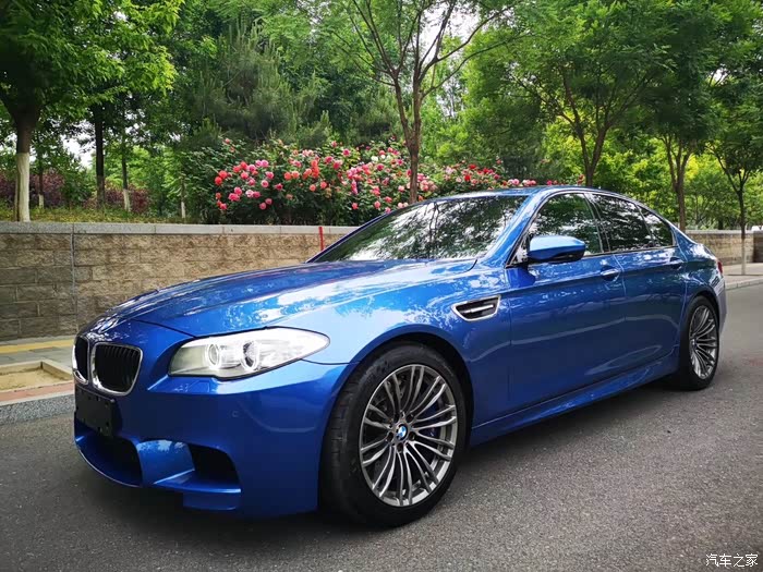 我呢,是个非常,非常,非常(重要的事情说三遍)喜欢车的人。也喜欢改装,但是也就是喜欢,也从来没改过(之前)。于是就这么开着,总体来说,我对这个525还是挺满意的,虽热是长轴版,但是底盘还是很扎实,你也别问我什么叫扎实,喜欢奥迪奔驰保时捷的也别来抬杠,我就是那个感觉。但是,重点是这个但是,总觉得4缸机跟6缸机那还是不能比的。总感觉有点遗憾。后来一晃时间就来到了19年,6月份的时候闲的蛋疼逛汽车之家的二手车信息,看见两个北京的,M5售卖信息,还是闲的蛋疼,打了个电话过去,介绍车况还不错,突然就动心了,然后呢,找了个检测机构,按电话去了花乡,检测后给我回电,车况良好,蓝色白内,3万公司,改了排气,说可以考虑。再然后,我就是直接去了,试了车,交钱,把大白525放那,当天,M5就开回来了。。。。。。就是这么的突然。