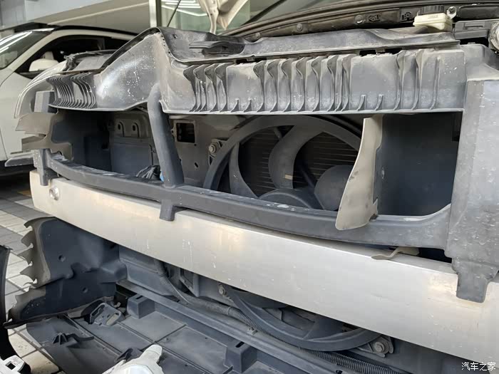 自己不知道怎么处理,只好打电话找附近的汽修来上门救援。修理工来之后听我描述了故障现象后,把空调打到制冷模式,发现风扇不转。初步判断是风扇故障导致发动机冷却能力不足,导致冷却液温度过高开锅。给加了一桶水发现冷却液没再漏,让开车到修理店检查。