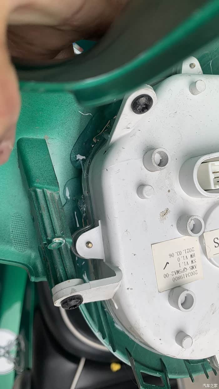 拆开外壳,直接往仪表和仪表旁边外壳接缝处打热熔胶。