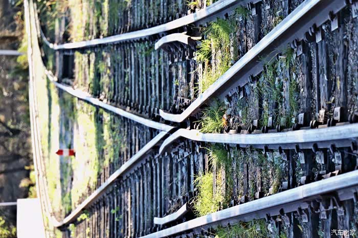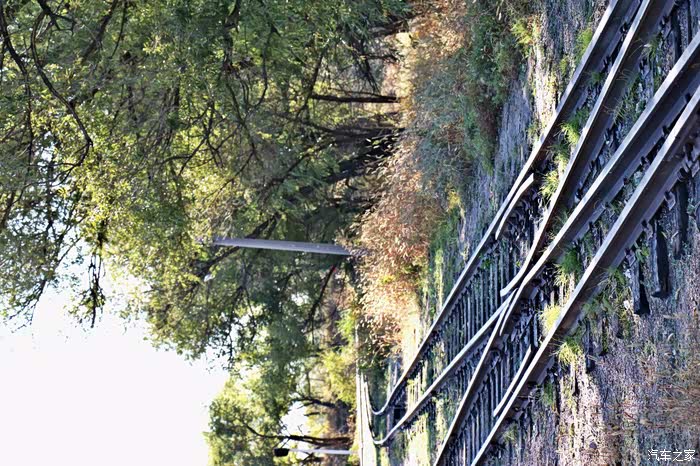 标牌两侧则是铁道了,其实我觉得这股铁路已经好久没用过了,轨道上也有满满的锈迹,而且我比较纳闷的是,不知道这些铁路的方向是通往哪里的呢?大家游玩时要注意,不要被轨道绊倒,尤其是行动不方便的老年人。
