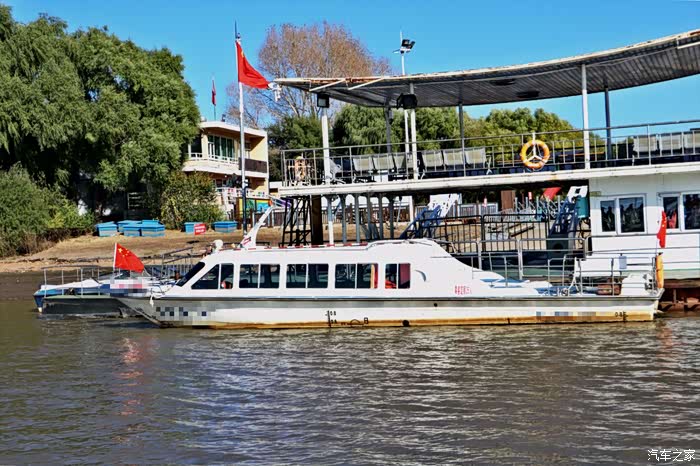由于是国庆节,轮船上也插了鲜艳的五星红旗,在风中飘扬,看到了这五星红旗,我的心中顿时肃然起敬。像这样运送旅客的轮船只有两艘,往返都是有固定时间的,大概是一个小时一班。轮船开动时风还真的不小,建议大家到这里游玩时要带好衣物,以防受凉。