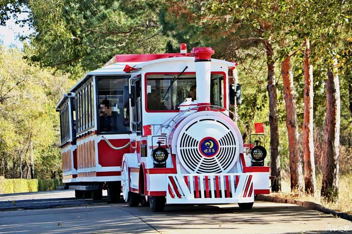 景区内有很多的交通工具,但是我觉得这个"小火车"最有特点了,它的优点是外形可爱,很受小朋友们的欢迎,第二个就是装的游客数量要比其他车辆多,而且只需要一个司机驾驶,省时间省人力。