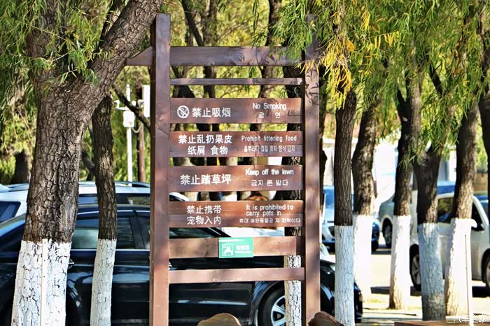 像这样的禁止吸烟、禁止乱丢垃圾的温馨提示牌,在景区内有很多,但比较人性化的是,在停车场内也有很多这样的提示牌,我觉得这点做的还是挺不错的,毕竟现在有些自驾游人们的缺点就是乱丢垃圾等等,标语牌是仿木纹材质的,而且有多种国家语言,让大多数人都能读懂。