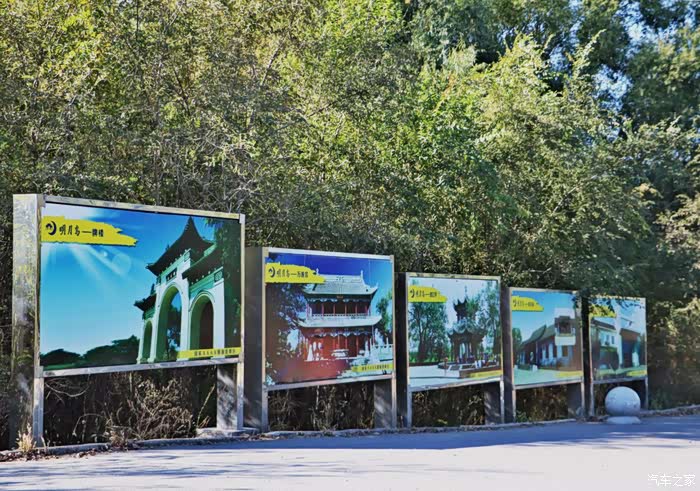 在景区大门口就有很多明月岛的宣传板,让人路过这里时都会很自然地阅读下宣传板上的内容,何况是我们特意来这里的游客呢?在门口前我看到了四大块宣传板,主要是以明月岛景区的特色建筑为例,进行精美的包装、宣传,例如明月岛内的牌楼、望江亭、玉后阁灯经典景观,十分吸引四面八方的游客。