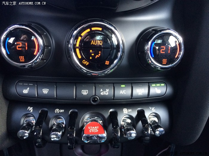 中控特写,双区自动空调,下面那一排按钮整个就一bmw不多做解释了,拨杆从左到右依次是倒车雷达开启,自动启停开关,打火开关,DSC开关跟抬头显示开关
