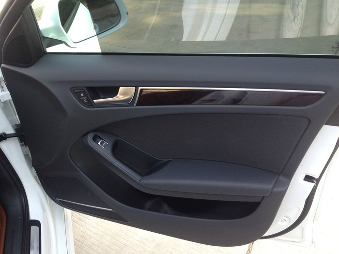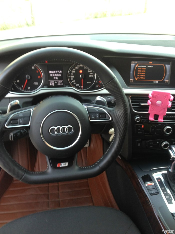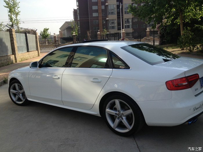 车型信息:A4L13款个性运动(简配前雷达和sline套件,好坑,带的是桃木内饰和18寸五辐轮毂,米其林245 40 R18轮胎),价格就不说了,因为当时15款个性运动还没有现车,就提了13款,4S本来送封釉和贴膜,但是我没要贴膜(你们懂的),4S就把贴膜换成大包围脚垫了,我看着质量还算不错。