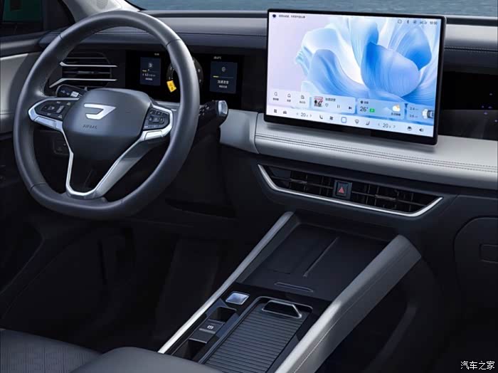还有内饰,中控台简直一摸一样,怀挡的设计也是如出一辙,包括悬浮大屏,还有副驾的闪光屏,都是复刻的。