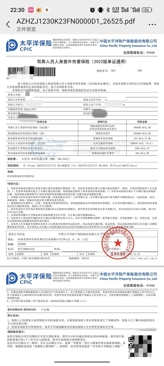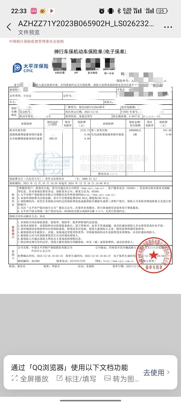 车险保单晒一晒