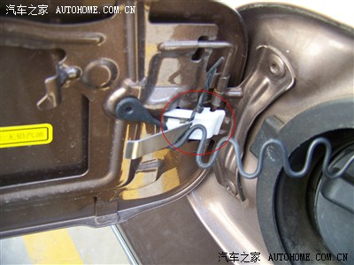 图中红圈范围中,那个金属弹片容易丢掉,早期的车这个问题比较普遍,后期好像少了,不过预防万一,先捆上了,用的材料也很简单,就是咋们日常中随手都能看到的,电器捆扎带,就是黑色那条。相信很多人家里都有。