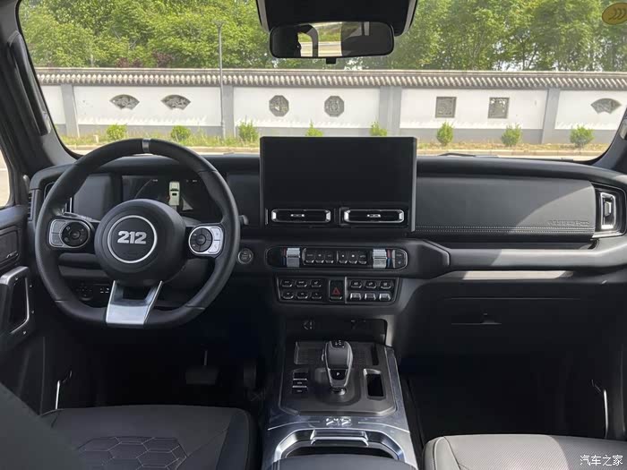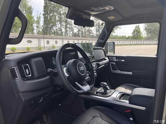 这是我练习倒库停车的时候拍的,作为一台硬派越野车,其实212 T01挺大尺寸的,加上确实高大一些又直棱直角的,我总是觉得会碰到旁边的车,于是就找了没车的停车场练习。手法还是不太行,经常偏一点,不过360全景影像加上透明底盘帮了我很多,慢慢都可以纠正过来。