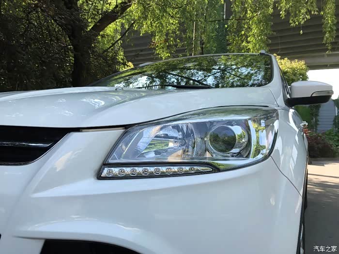 丐版的配置不高,用今天的眼光来看应该是很低了。改款前的翼虎外观挺硬派野性的,因为有18寸的大轮毂所以很多人都不觉得这是低配。开了一段时间后就改了冰蓝大灯,原车的卤素灯效果实在是不敢恭维,我本来高速就跑得多,很多时候又是在晚上。最开始时候还挺守规矩,老老实实的开着近光灯,看不清的话就慢慢开。看得清的时候就开快点儿。后面慢慢开始试着开远光灯跑,发现远光效果也就那样,而且我内心很善良,觉得这样太影响别人了,特别是遇见那种小跑车,车身特别低,我开近光感觉他们都难受更别说远光了。纠结了很久,还在论坛里发过贴问过,最终还是决定改灯。有次在路上看到辆恶魔眼的MK4,第一次觉得大灯如果有颜色的话也很好看啊,也想这给翼虎换个恶魔眼,但看了店家的照片觉得不好看,所以才换了冰蓝大灯。现在觉得其实还是正常的好看一些,原厂的总归是最耐看的,媳妇经常吐槽我的大灯山寨…