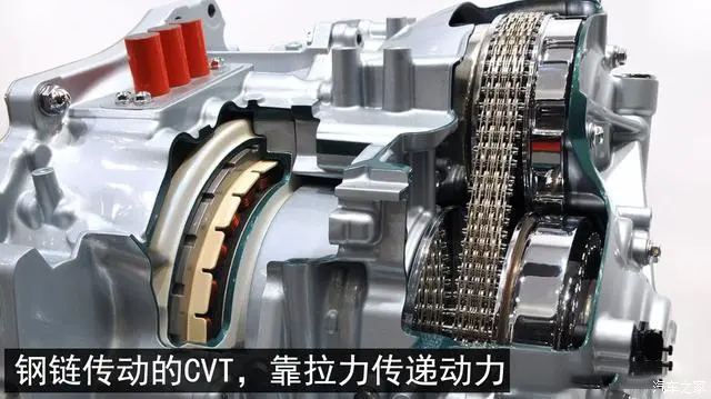 现在CVT变速箱主要有两种,一种是拉力钢链式传动,这种变速箱使用的传动带为钢链,它确实是像链条一样靠拉力传递动力。
