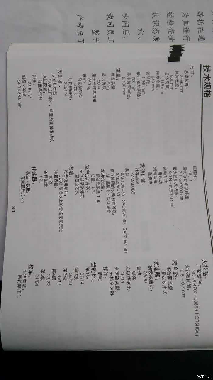 6、需要说明的是摩托车说明书说1000公里换第一次机油,其他以后为2000公里换!