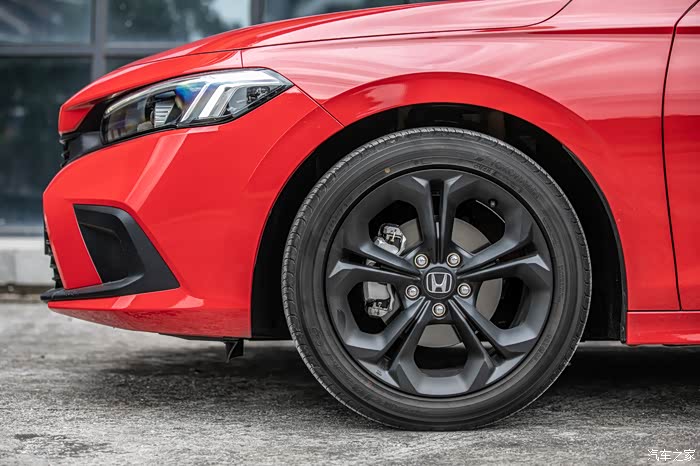 双五幅式的17英寸轮毂,特点是视觉效果更好,胎壁更薄,在行驶时胎壁的变形量比较小,能够换来更好的操控性和制动性能,不过卢卡觉得新思域轮毂上熏黑的质感比起旧款思域来说,似乎有点不够“醒目”。