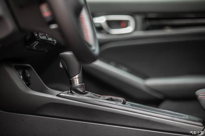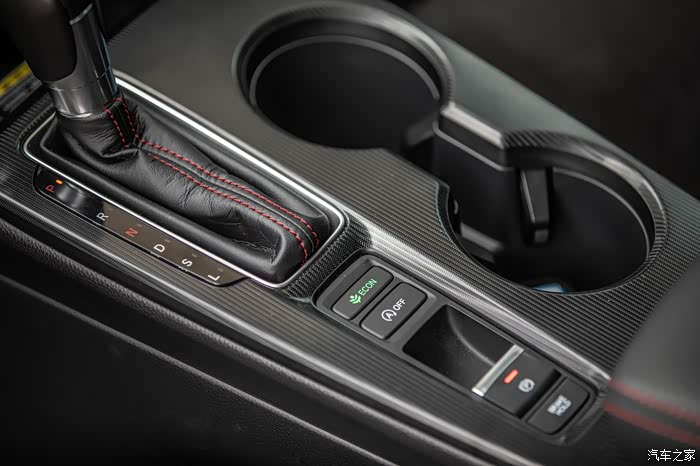 档杆还是本田轿车家族化的设计,金属的档把外加皮质的包裹,和老款思域有别的是,十一代思域的杯架从档把的后面移到了档杆的右侧,卢卡猜测这也是出于实用角度的考虑,仔细看的话档杆也是有点往驾驶员的方向偏了点角度。