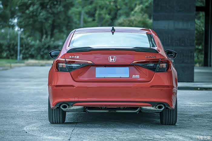 在十代思域尾部最具代表性的“回旋镖式”的尾灯,以及类似手机充电接口的排气管在十一代思域上都销声匿迹,取而代之的是传统式双边单出的排气,尾灯没有采用当下流行的贯穿式设计,而是走的复古风,颇有些90年代日系轿车的味道。