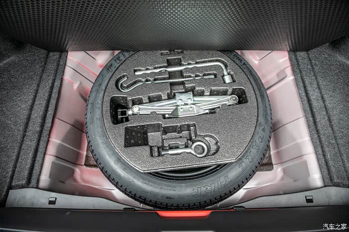 打开后备箱的暗格,里面大有乾坤,备胎静静地躺着以备不时之需,为出行带来更好的安全保障,也难怪思域的后备箱空间不是太大,原来是有个“大家伙”占地。
