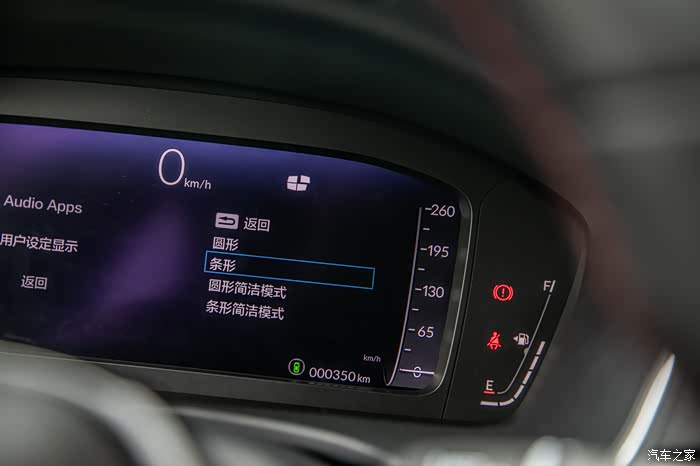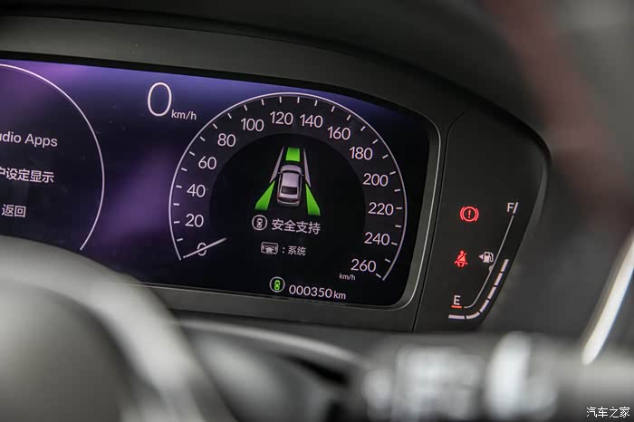 10.2英寸的全液晶仪表盘,设计上呢并没有玩花里胡哨的东西,而是“化繁为简”的把功能切换区域和车辆状态区域巧妙地“揉”在仪表盘上的两个“大圆圈”里面,足够的清晰也足够直观,乍一看还以为是个机械仪表盘,但只要定睛一看,左边圆圈中的功能切换区域的UI界面又会把你拉回现实,营造出一种“机械与智能的重合感”,妙不可言。