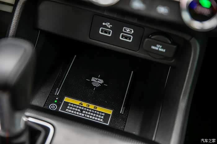 前排中央扶手区域也是有无线充电和两个USB的接口,这样主驾副驾就都可以充电了。