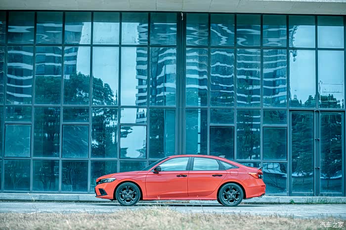 十月的清晨,已是深秋初冬时节,一颗颗晶莹剔透的雨滴倾泻洒落在龙城大地上,还没来得及绽放跳跃,便幻化成滩滩清水,无声的从都市CBD的幕墙排水管里流淌到地上,然后悄无声息的排入地下管道,润物细无声。而我们今天的主角十一代思域,就这么静静的停在门口,“拉力红”的鲜艳配色在以黑白灰为主色调的CBD建筑群中显得是如此的鹤立鸡群。