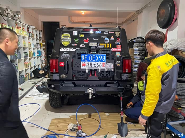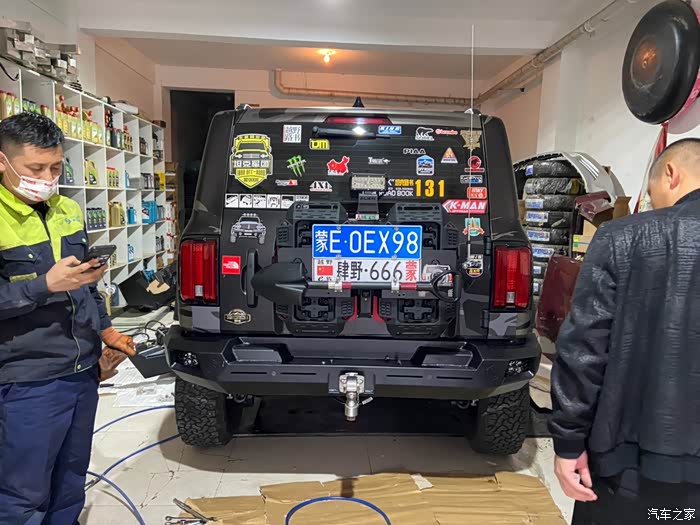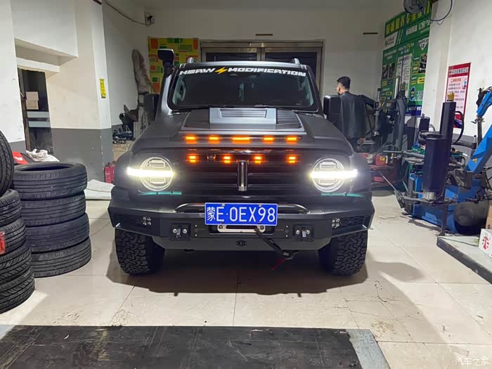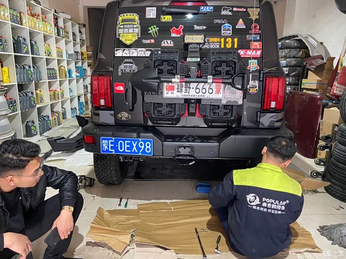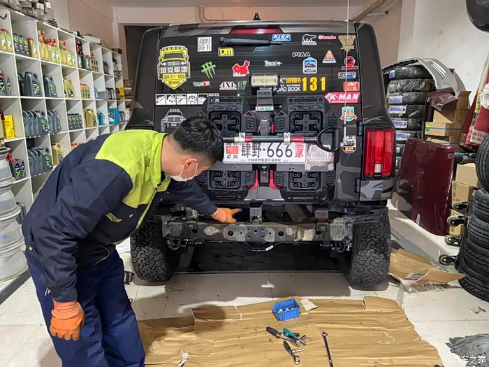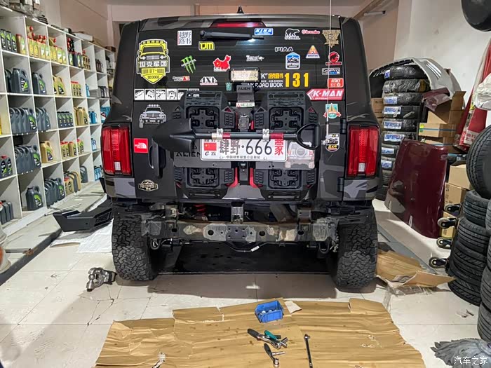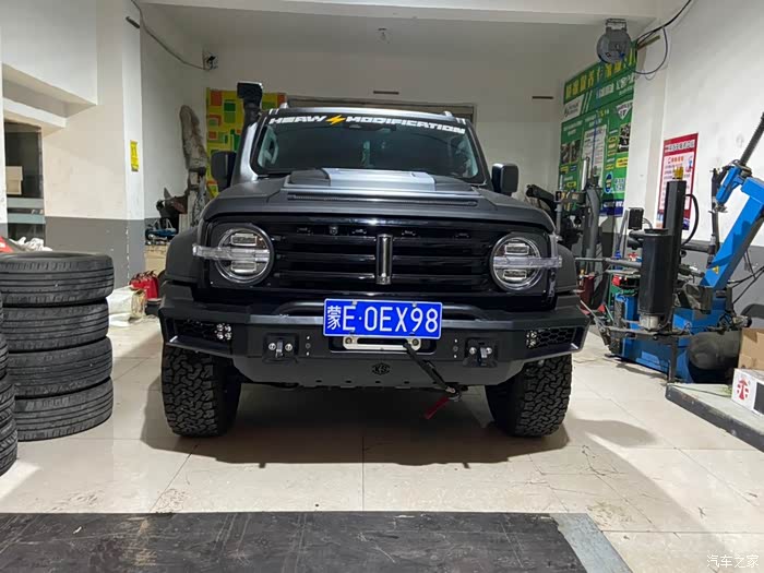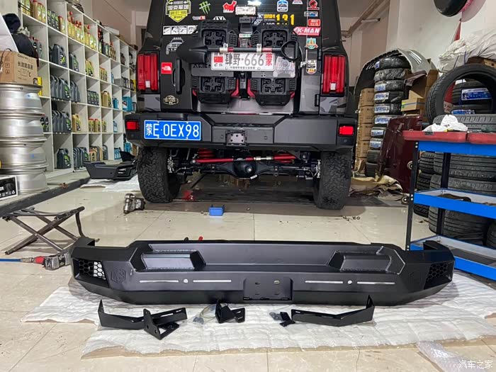 这是最后前后杠都完工的样子!这个前杠还自带了下护板!不过改装前后杠优点有,缺点也有,优点是接近角离去角大了很多,小的磕磕碰碰也不会有太大损失,缺点就是这一对前后杠挺重的加一起一百多斤!不过玩车么,各取所需自己权衡利弊在动手改装吧