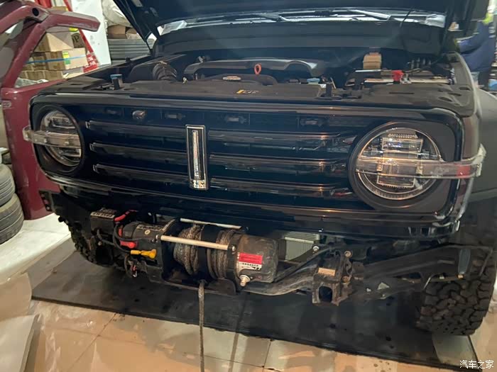 前杠就相对麻烦一些了!因为我加装了原厂的绞盘,后期自己又改了遥控器!杂七杂八的线束和插头也比较多!所以拆装起来相对来说有难度!