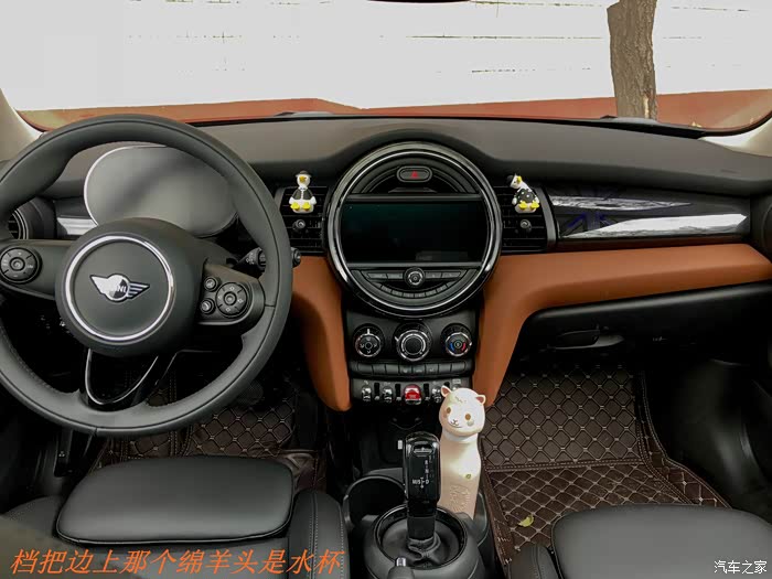 2、cooper S以下版本取消了中央扶手箱,这一点不太确定。因为提车的时候我的经典派是没有扶手箱的,而展厅里的那台cooper S的扶手箱还在,虽然会妨碍拉手刹,不过有总胜过无吧。
