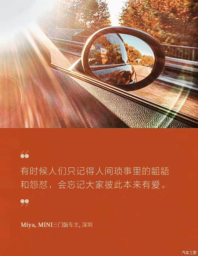 成为mini车主一周了,心情很兴奋。mini是我们生活里的调味剂,是一瞬间的惊喜;从拥有了mini的那一刻开始,我们就会明白没有ta陪伴的未来、最难将息。