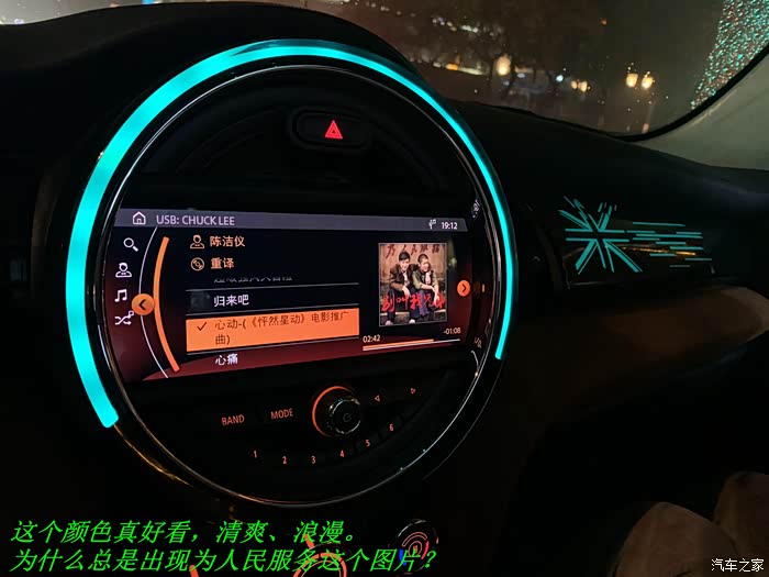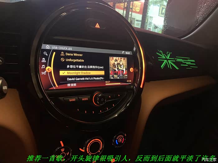 5、手机相册里总有几张晚上拍的中控屏里正在播放的歌名和发光面板的照片。