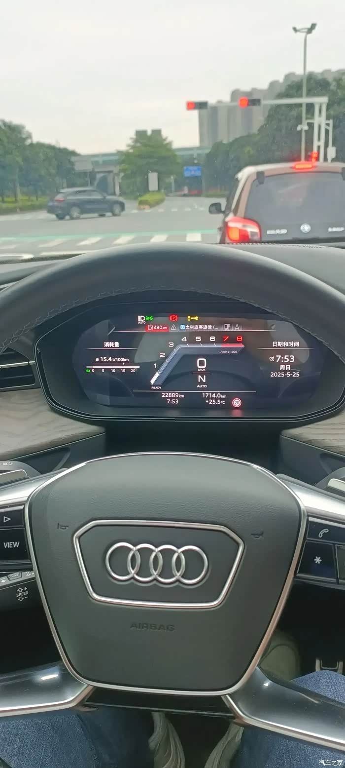 这种时空交错感,恰似Q6座舱内虚拟按键与传统真皮的碰撞——三联屏的科技感下,Nappa真皮的方向盘依旧保留着德系豪华的厚重触感。