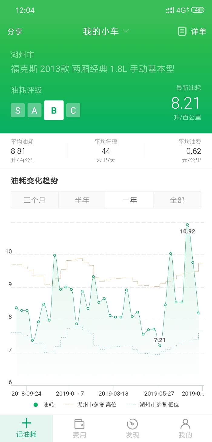 福克斯确实费油,但是你这个有点狠啊,我是百公里9-9.5,你这个应该是哪里出问题了,我二百块跑三百公里