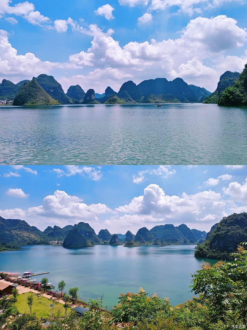 【浩坤湖】一定要自驾环湖一周,才能充分领略浩坤湖的美。我们没有走明星的徒步路线,觉得这样更省力,还可以全方位欣赏浩坤湖。从游客中心出发,一路经过木棉树观景台(适合拍全景)、猪笼洞(爬90度垂直竹梯,刺激)、棕榈洞(体验穿洞天坑)、渔翁亭(日落绝佳观赏位),不过路是单车道不太好开,会车略困难。