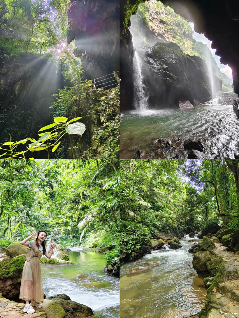 刚进入景区一路水汽氤氲,如浸在水里的凉爽体感。随之会进入各种溶洞,过地下暗河,见到巨型蕨类,高潮的部分是逼近通灵大瀑布,湿身带来的心旷神怡,环瀑布下的洞穴和暗河,如队友说的“仿佛进入了瀑布的心脏”,都是很差异化的体验。