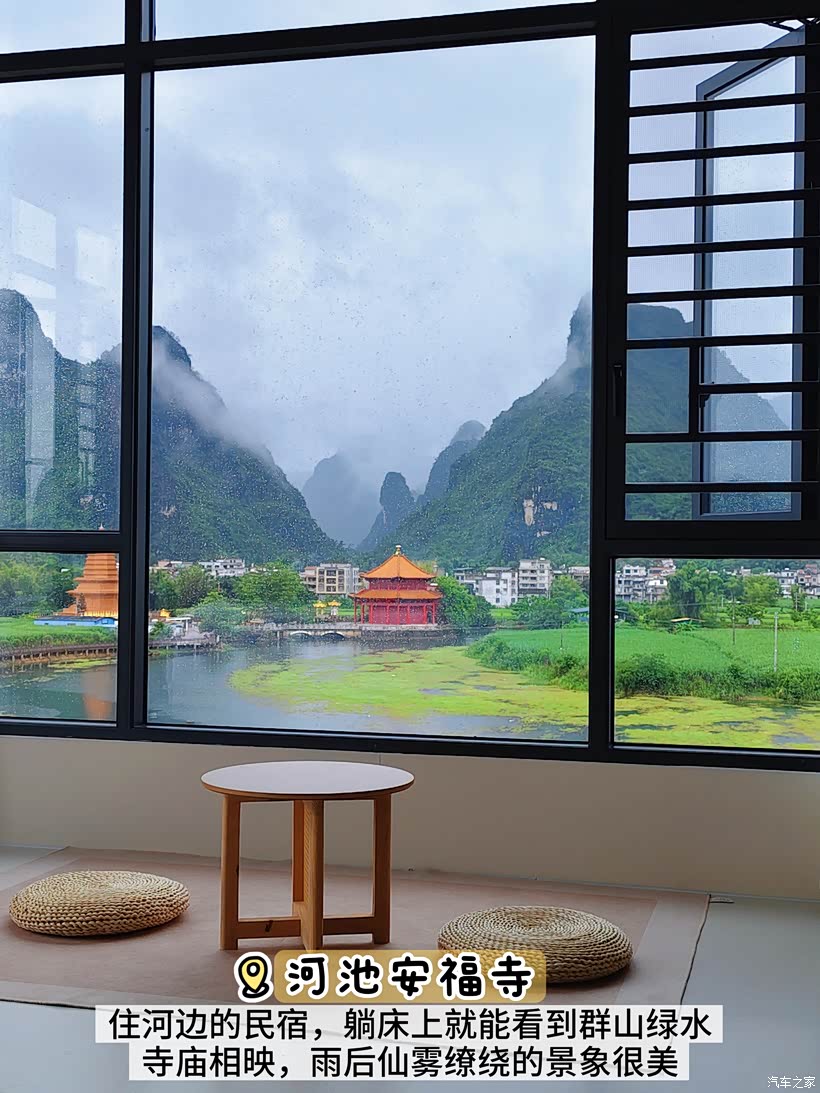 初到都安,我们定了一家在安福寺附近河边的观景民宿,下雨天就宅在民宿房间里看烟雨山水墨画!这里的景致带着一种宁静祥和。躺在床上,群山绿水与寺庙相映成趣,雨后更是仙气缭绕,宛如仙境。不管是躺在床上,还是在沙发上葛优瘫,窗外的美景都能治愈一切疲惫。