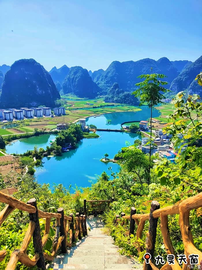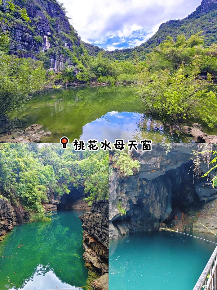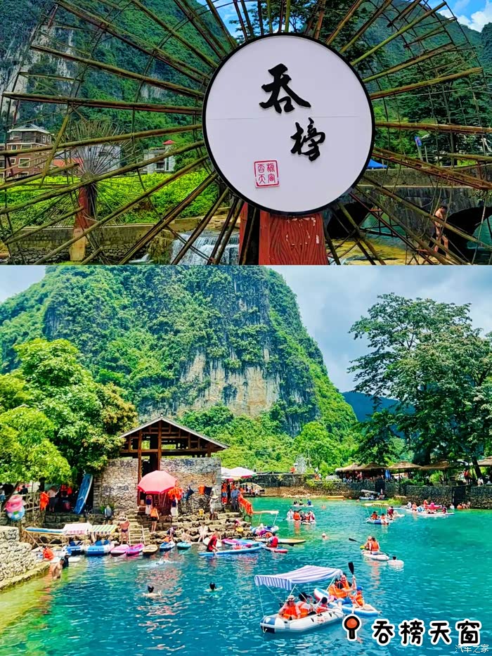 唯一能 “水陆双玩” 的天窗,旁边有登山步道,爬 20 分钟就能到山顶,山顶小亭子能俯瞰整个天窗群,喀斯特峰丛的层次感超震撼。和吞榜特别近,玩水体验不如吞榜,适合拍照不适合久玩,建议和吞榜串线游玩。