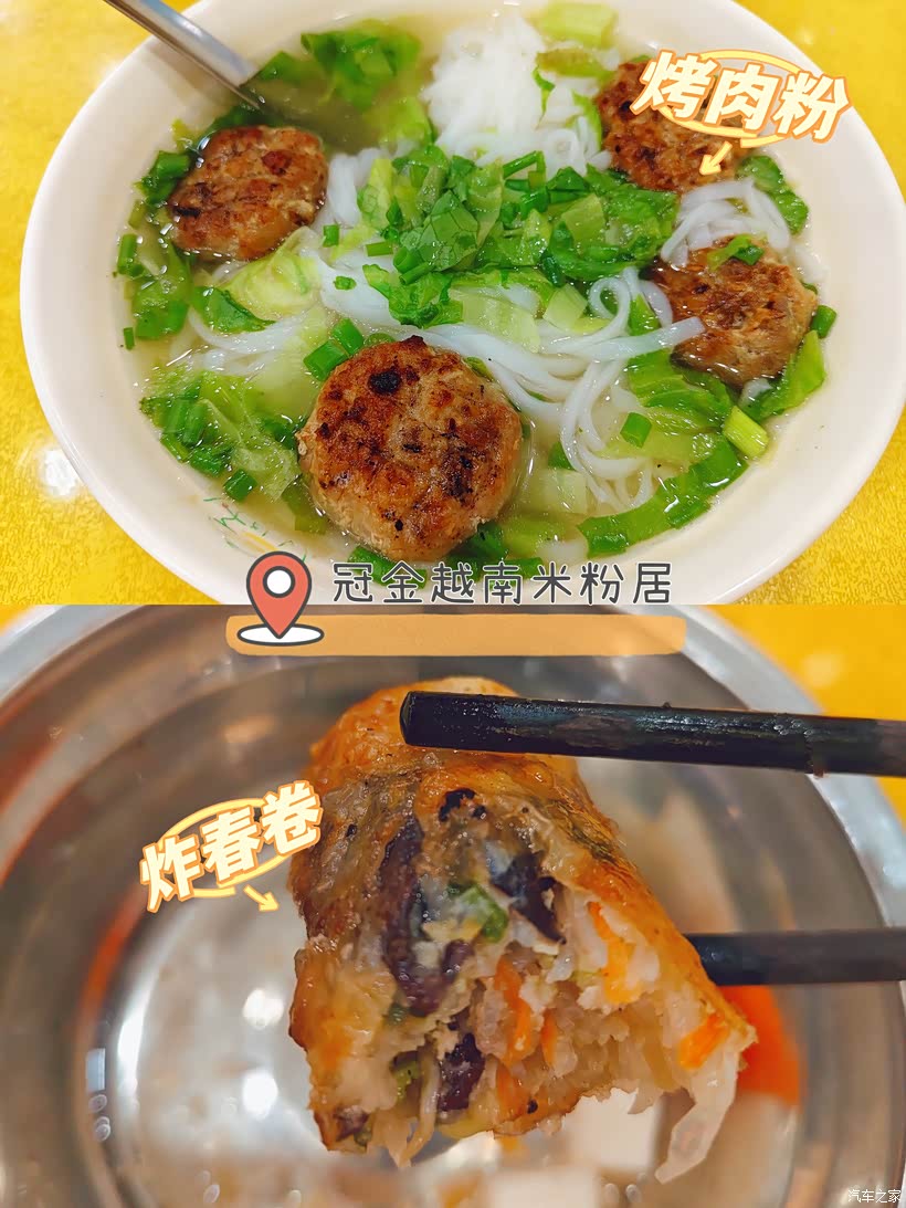 ?冠金越南米粉居:必打卡的老字号,当地人很多推荐,点了烤肉粉,汤头鲜甜,米粉爽滑,小料那些自己加,可以加点青柠,吃起来很清爽。炸春卷好好吃!配上酸酸甜甜的酱汁超解腻