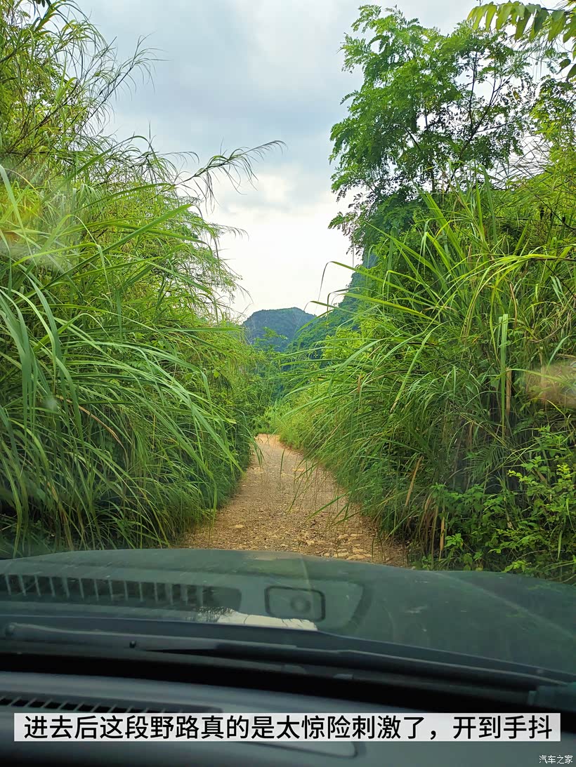路特别窄,还是土石路,有一段上坡下坡很多坑,两边窄到根本无法开车门,杂草浓密比人还高,一路都在刮着车过,车内障碍物提示音就一直滴滴在响,开得胆战心惊手都在抖,既怕对向来车进退两难,更怕再往前开还是这种路调不了头……