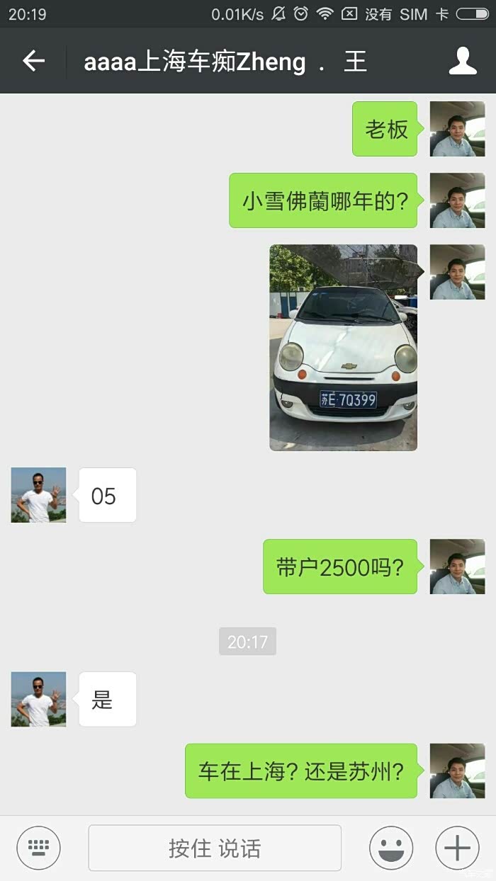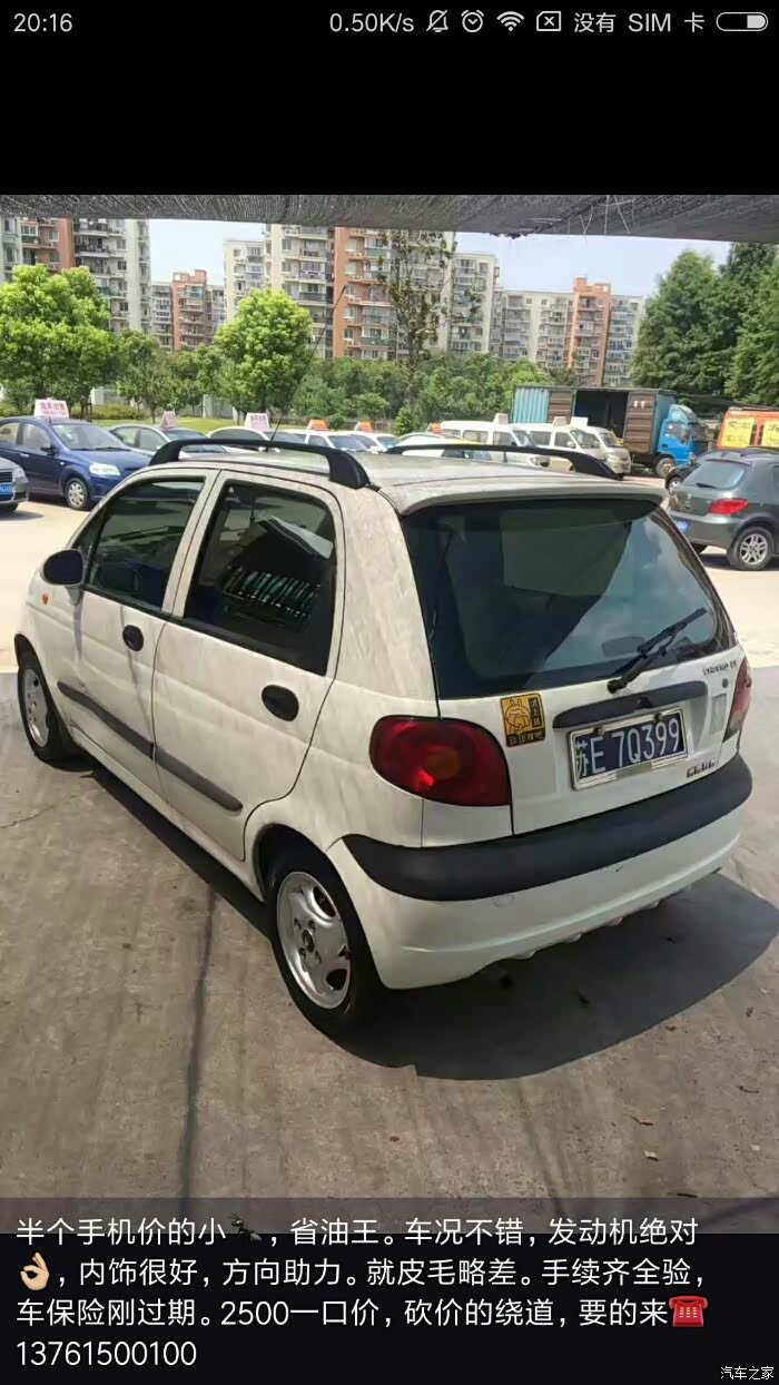 05年的小乐,0.8排量,带助力。 二手车 2500元皮毛不好后面看还可以豹纹的方向盘套让我第一时间给扔掉了油箱盖脱落卖家发的信息。。。 很实在的大哥2500元,成交,。 多加了300元让老板帮忙审一下车。费了好大力气 抢票出发只买到一张硬座同行的乘客很照顾我们,夜里没有委屈孩子快到上海了,翘首以待。其实孩子惦记着去迪士尼呢。提车很简单,余款交给老板车就开走了,跟买菜一样简单。。。。第一件事就是带孩子看大海开上崇明岛长兴岛和崇明岛之间的跨海大桥孩子以为是大海,其实这里还是长江。。。。不能忽悠孩子,明天带孩子去...