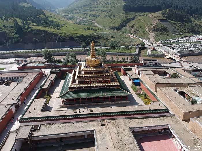 往甘加的路不难走,路上路过一个观景台,在那里就能看到远处的白石崖,当时应该停下拍照的,但想着回来时还是原路返回,到时候再拍不迟,谁知回来时光线发生变化,白石崖看不清了。话不多说,一直走啊走,快走到八角城时被一个藏族村妇拦住了,要收门票25一人,我一再解释只是去白石崖从八角城路过,绝对不停车也不行,必须买门票,然后我就掉头返回了,开出了200米找地方停车,派我的飞机过去侦察了一番,哈哈,其实你就是买了门票进去也看不到什么风景,必须航拍才能看清古城的八角模样,飞机帮我赚了50块钱门票。至于白石崖,也没必要走到跟前去看,远远的拍摄就行了,白石崖下面有个溶洞,花钱找喇嘛可以带你进去,但里面没开发,黑咕隆咚,还很泥泞,我压根也没打算去,所以航拍完毕就立即返程,路过那个观景台又拍了一番,然后就到了夏河县城,也就是拉卜楞寺,县城先吃了饭,然后车停到拉卜楞寺景区停车场,过夜车17块,停车场很大,但晚上停车场厕所关门,要到外面去上,好在也不远,傍晚还在拉卜楞寺外面小转了一下,晚上很凉快,住床车很爽。